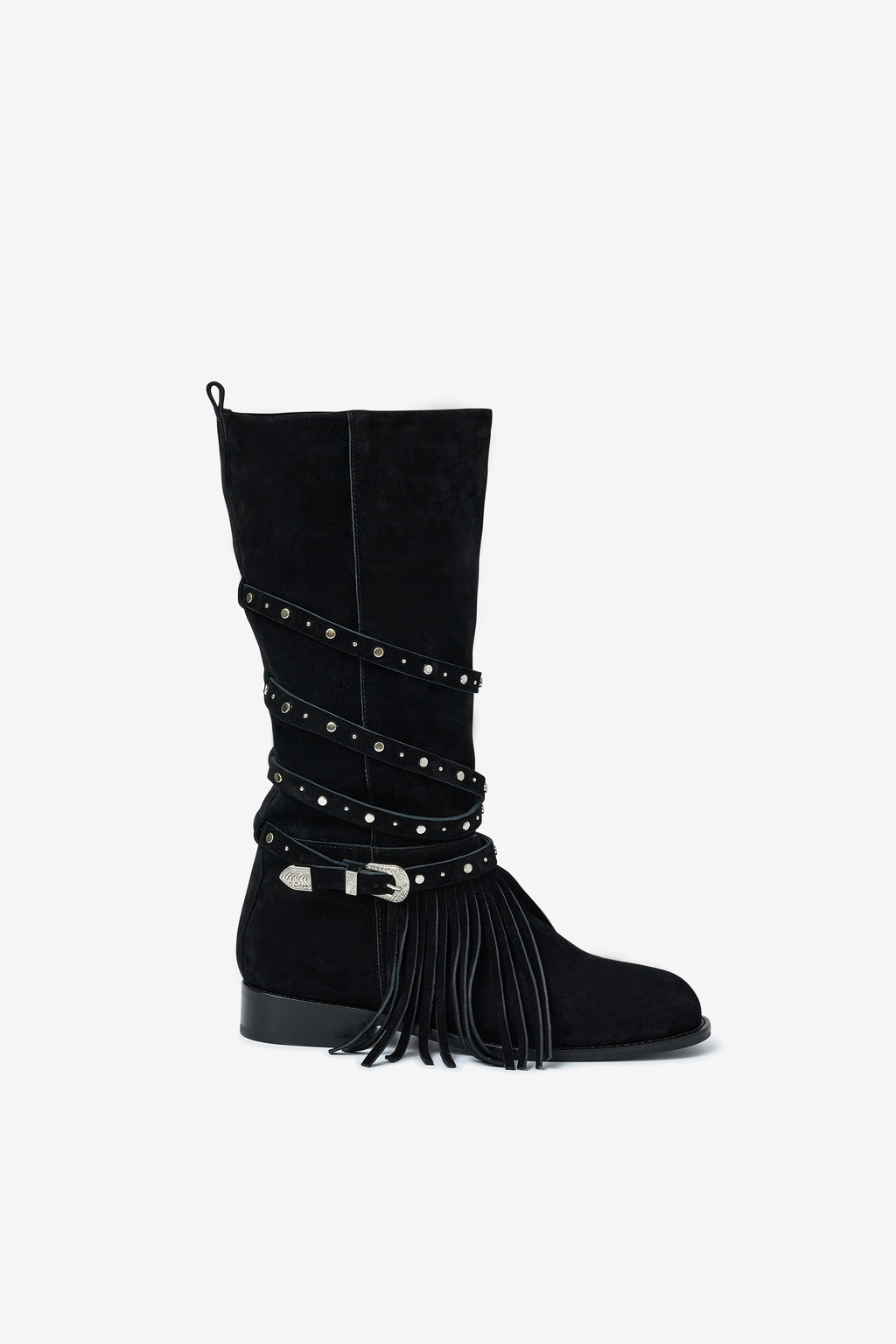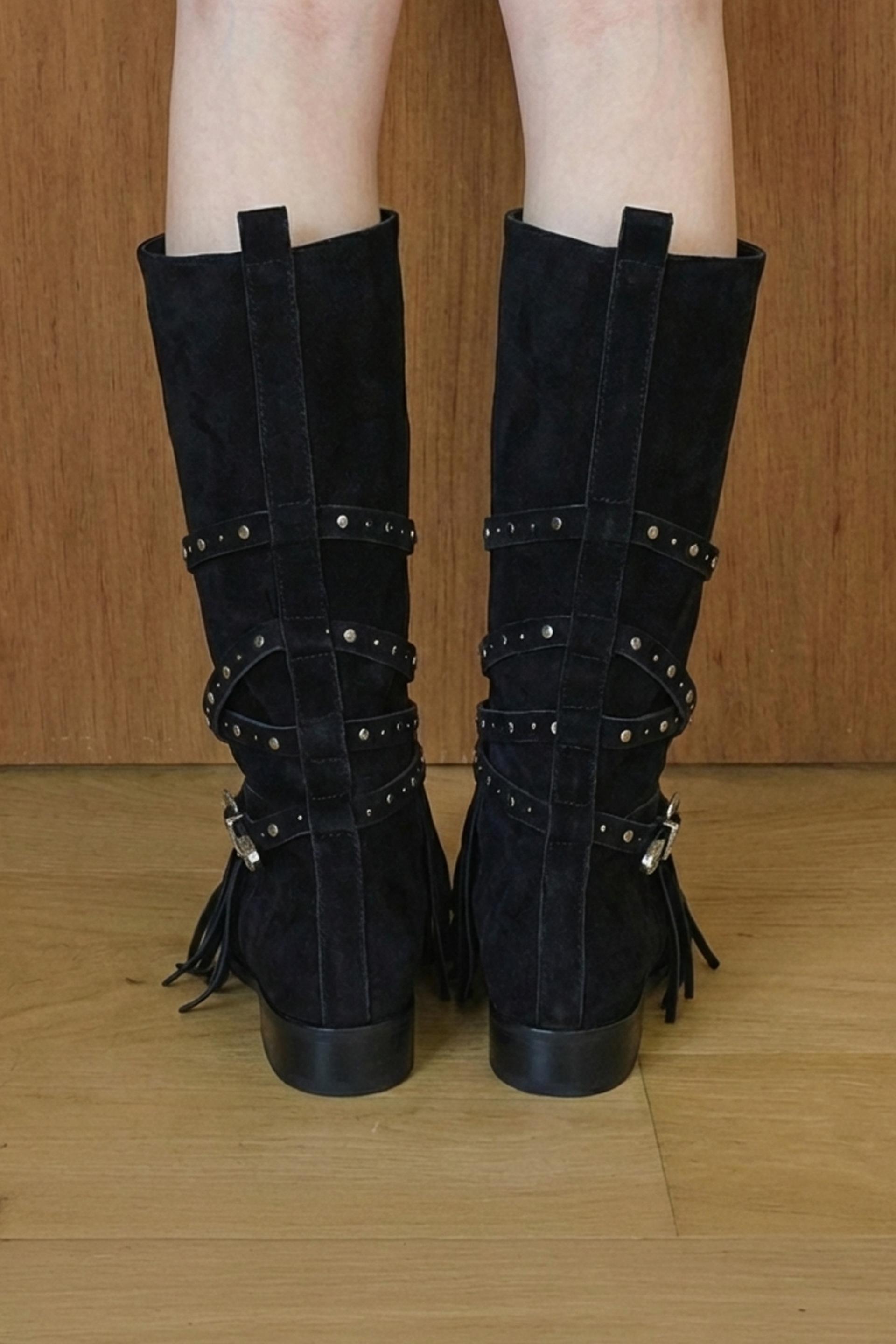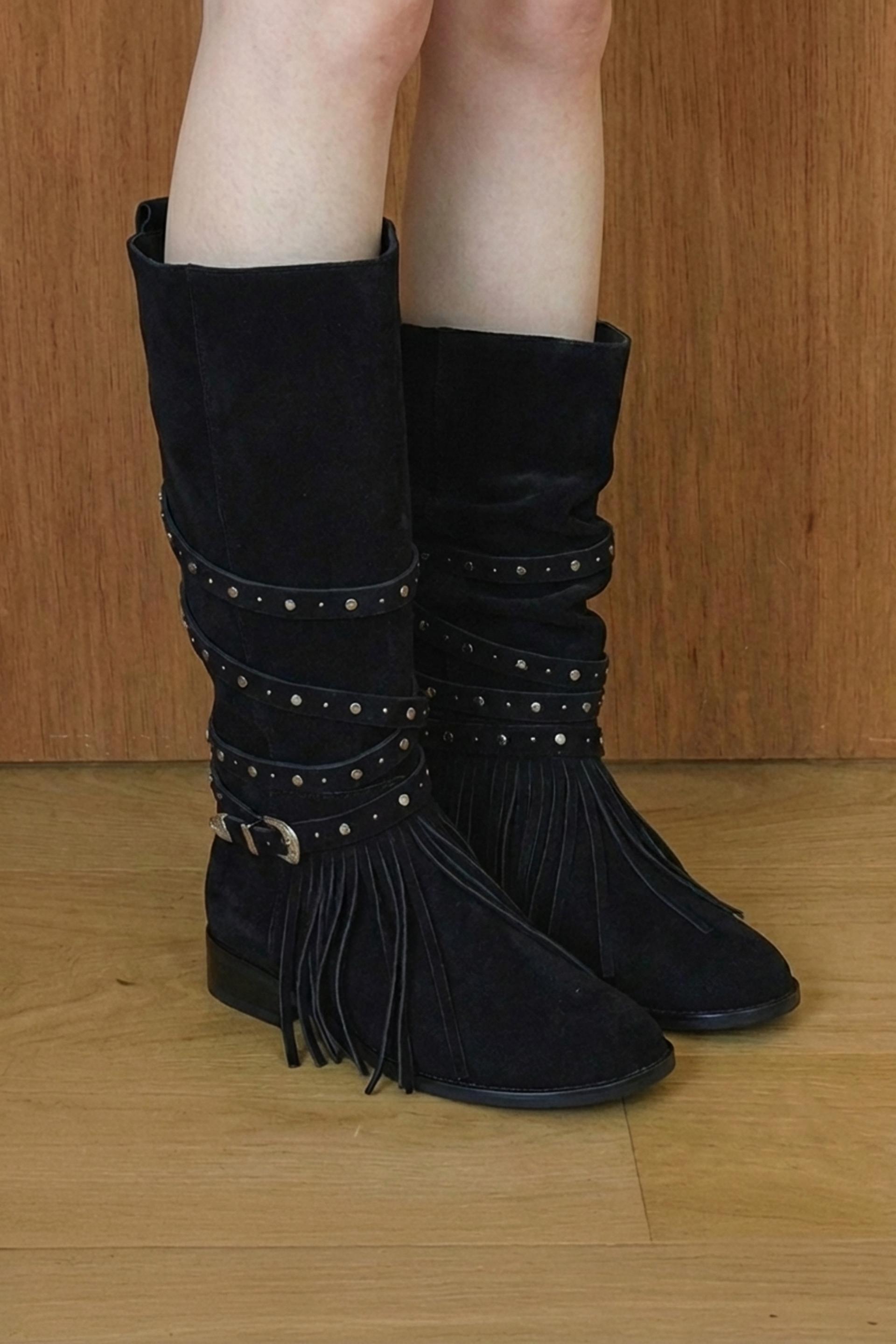 ARBOR 591은 보헤미안 분위기를 완성하는 프린지 디테일을 더하고, 부츠 전체를 감싸 흐르는 스트랩과 웨스턴 버클 장식이 자연스럽게 조화를 이룹니다.