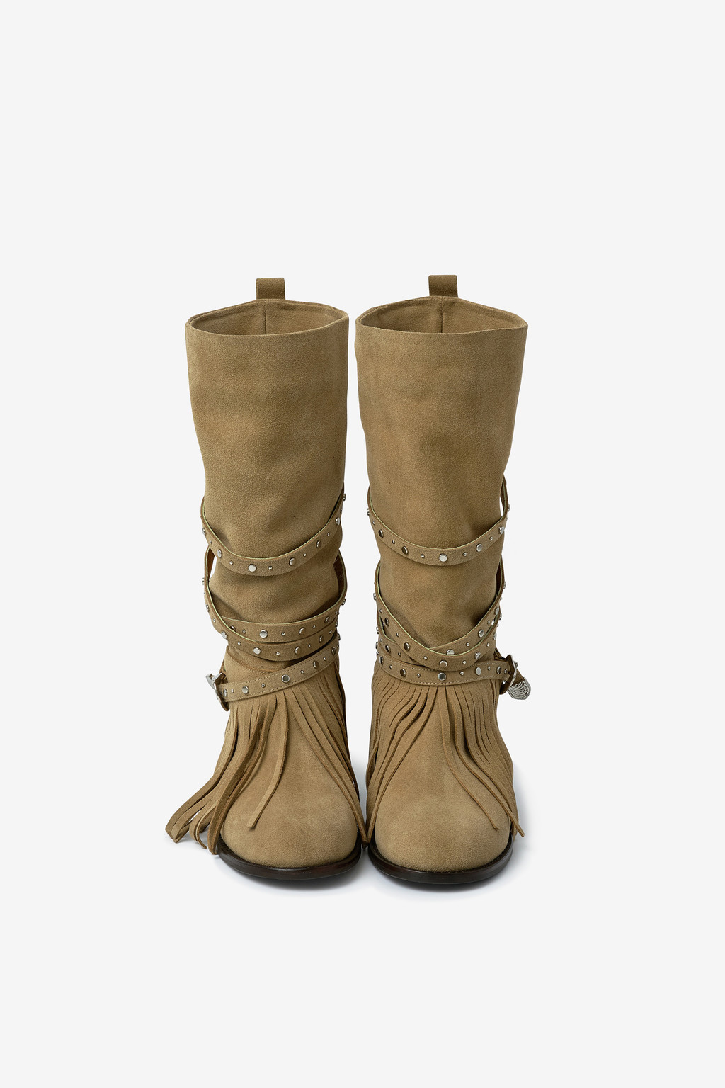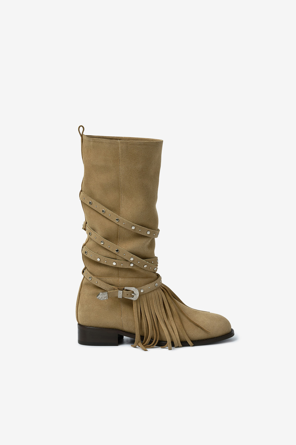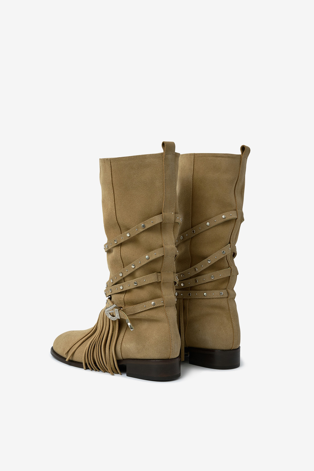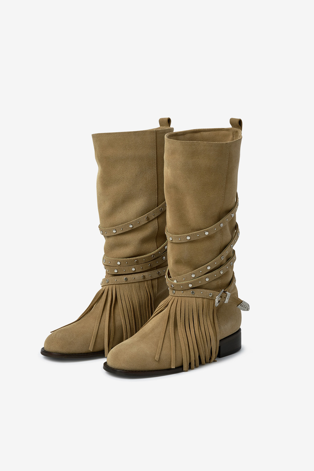ARBOR 591은 보헤미안 분위기를 완성하는 프린지 디테일을 더하고, 부츠 전체를 감싸 흐르는 스트랩과 웨스턴 버클 장식이 자연스럽게 조화를 이룹니다.