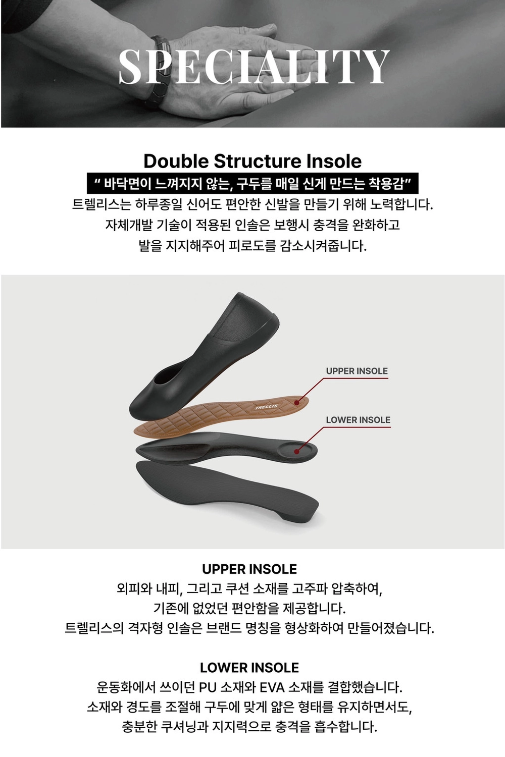 뒤꿈치 양가죽과 자체개발한 특수소재 인솔을 사용하였습니다.