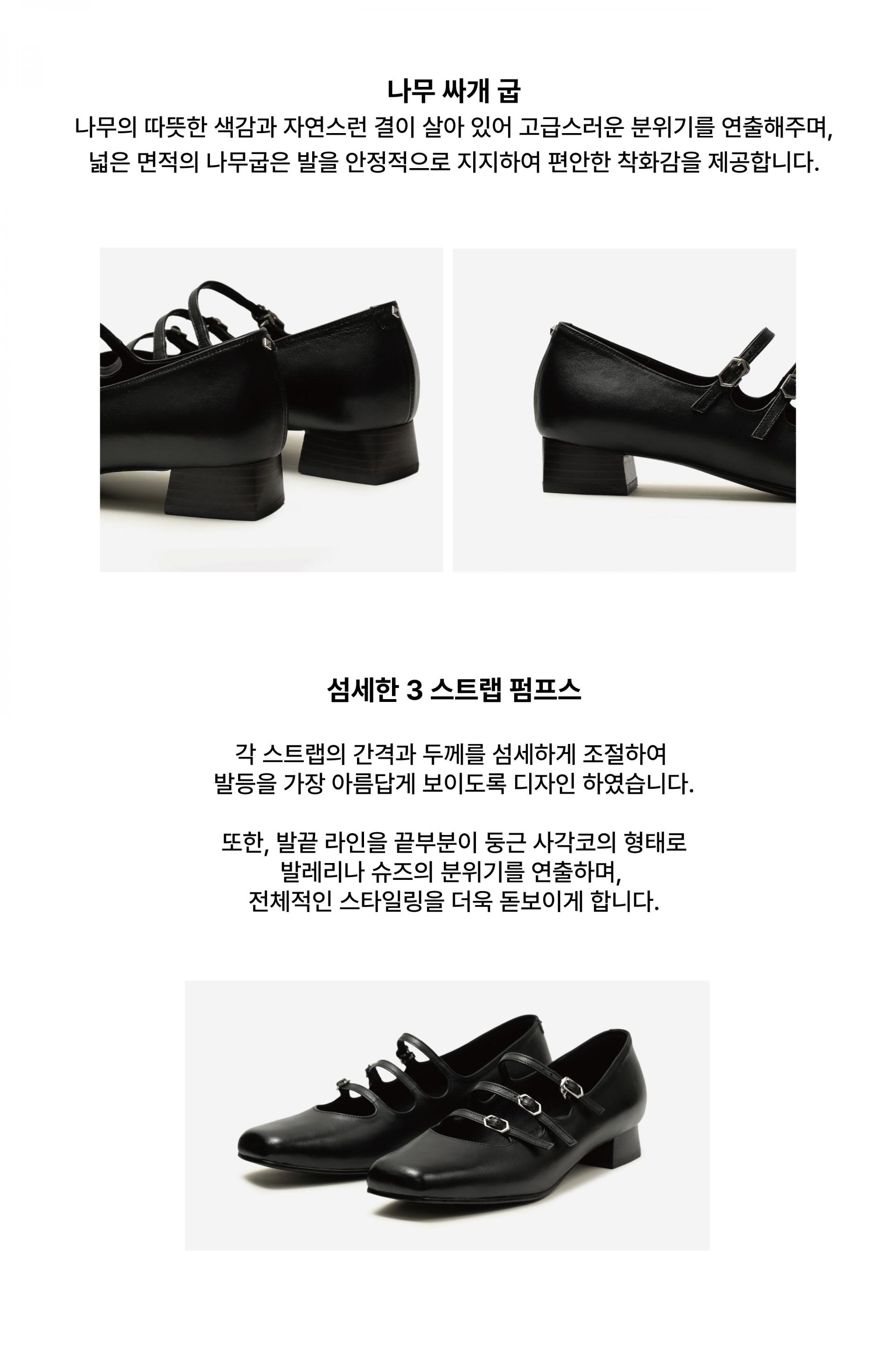 발끝까지 사랑스럽게 보이는 3스트랩 메리제인 슈즈.