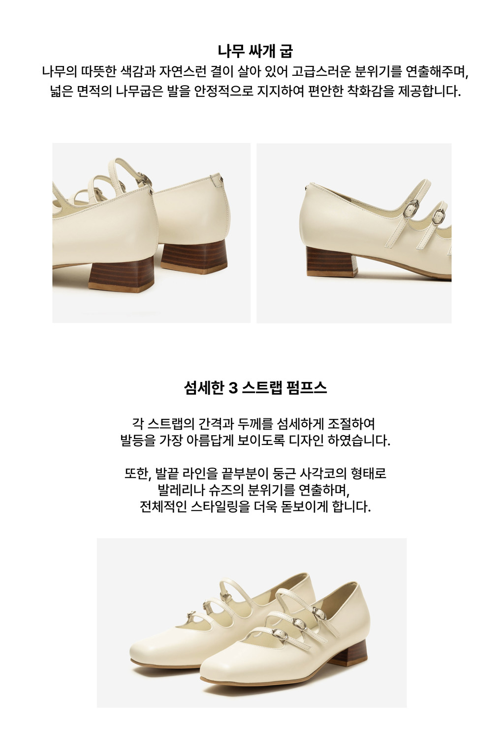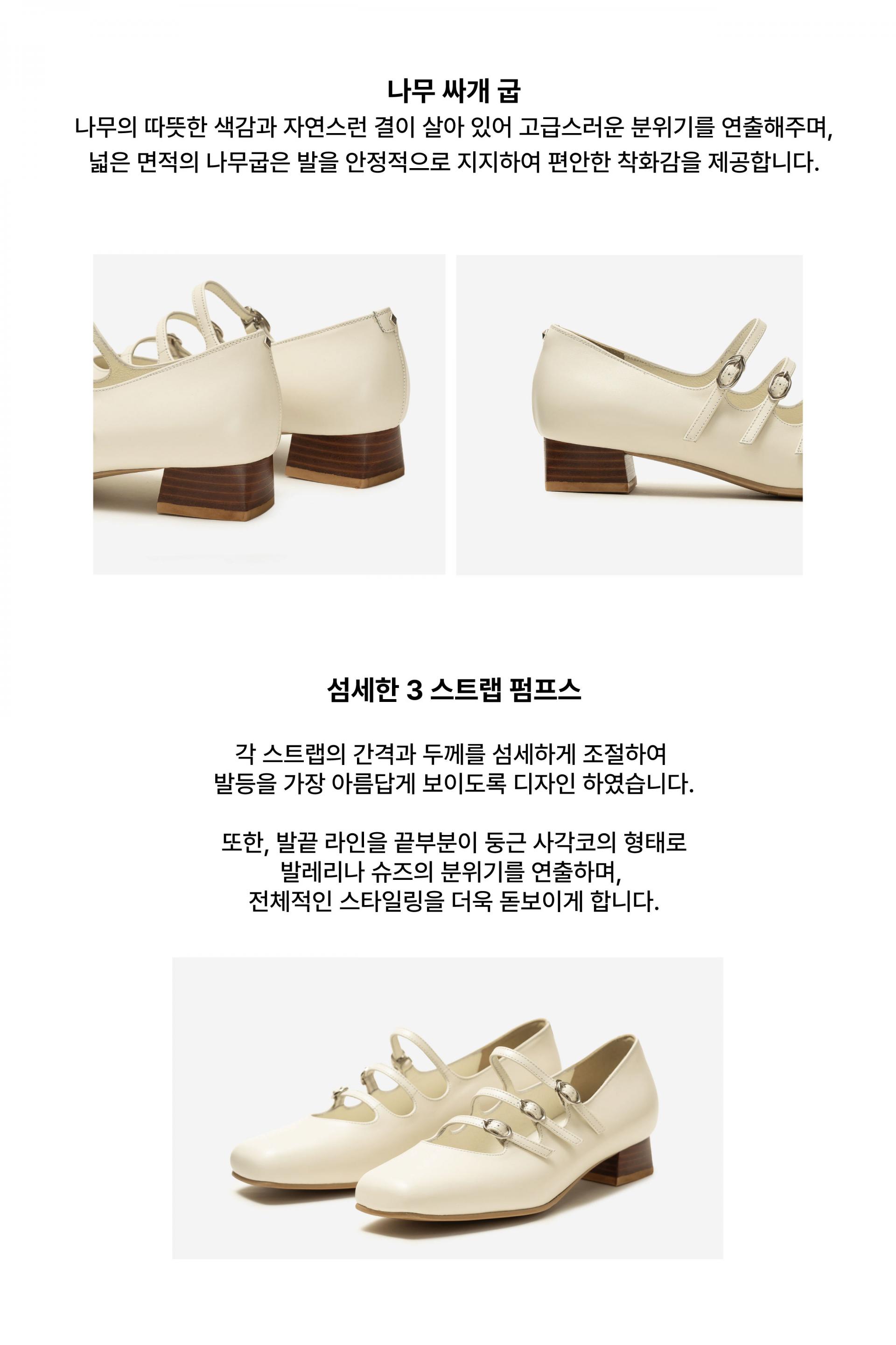발끝까지 사랑스럽게 보이는 3스트랩 메리제인 슈즈.