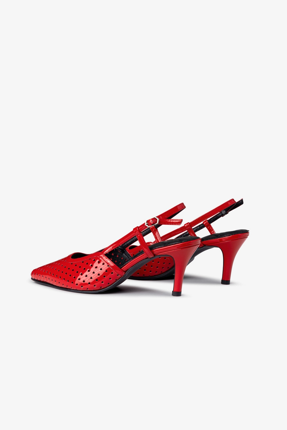 섬세하게 가공된 퍼포레이티드 애나멜 가죽 소재는 빛나는 광택으로